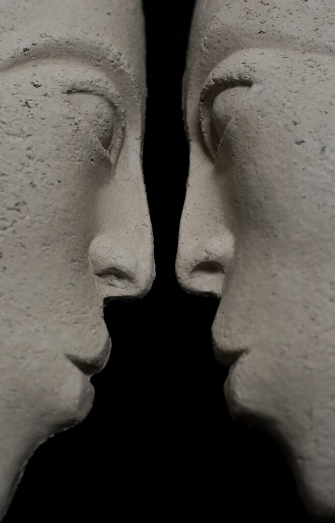 Twoje, moje, jego, jej, nasze… spojrzenie, intymna więź, dotknięcie bez dotykania. One nigdy nie nauczą się kłamać, tylko zamknięte milczą. Ona i on, nie znają swoich imion, wieku, przeszłości. Spotykają się po coś, jak w spektaklu Mariny Abramovič, gdzie dyskomfort i doprowadzanie ciała do granic wytrzymałości uwalniają emocje. Siadają blisko a ich kolana prawie się dotykają. Przeznaczeni sobie tu i teraz. Wydaje się, że to proste patrzeć w oczy, być całym sobą w tej relacji. Milkną szepty, cisza otwiera swe ramiona, bez słów, bez gestów, uśmiechów. Czuję spokój i bezpieczeństwo, nagle ten stan przerywa brak powietrza a chaos ogarnia głowę i ciało, czas osacza bezlitośnie. Pytanie rodzi pytanie „Skąd przyszliśmy, Kim jesteśmy, dokąd zmierzamy?”